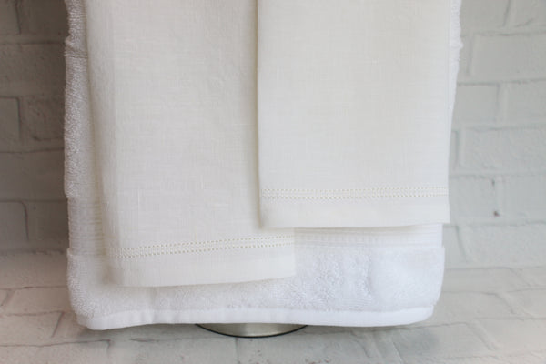 100% Linen (off-white, grey or beige) medium weight hemstitch towels was made with comfort and style in mind. Great as a Christmas gift, Bridesmaid gift, Birthday, Housewarming or Wedding gift.